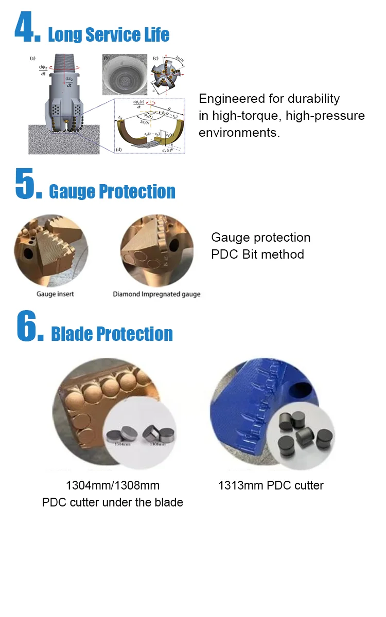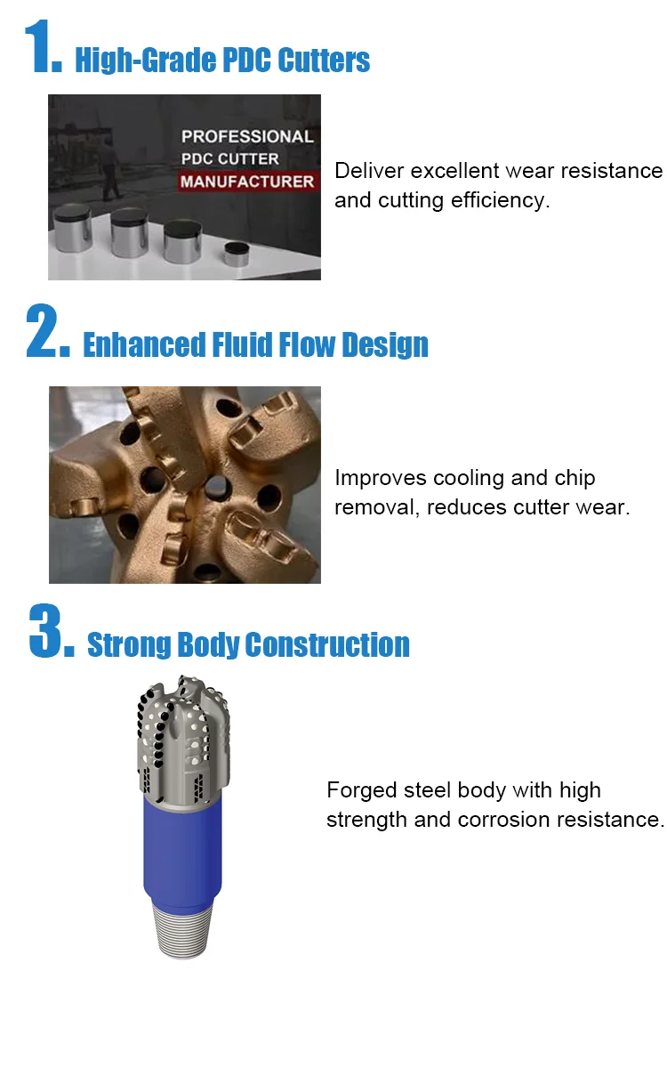 Featuring premium PDC cutters, our PDC drill bit are superior abrasion resistance, fast penetration rates and extended work life. Each bit is precisely designed with optimized cutter place, hydraulic flow channels, and strong body structure to ensure stability, minimize vibration, and maximize drilling efficiency even in challenging conditions.